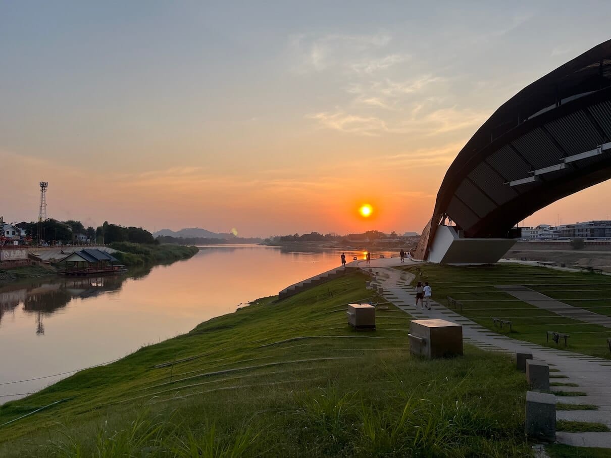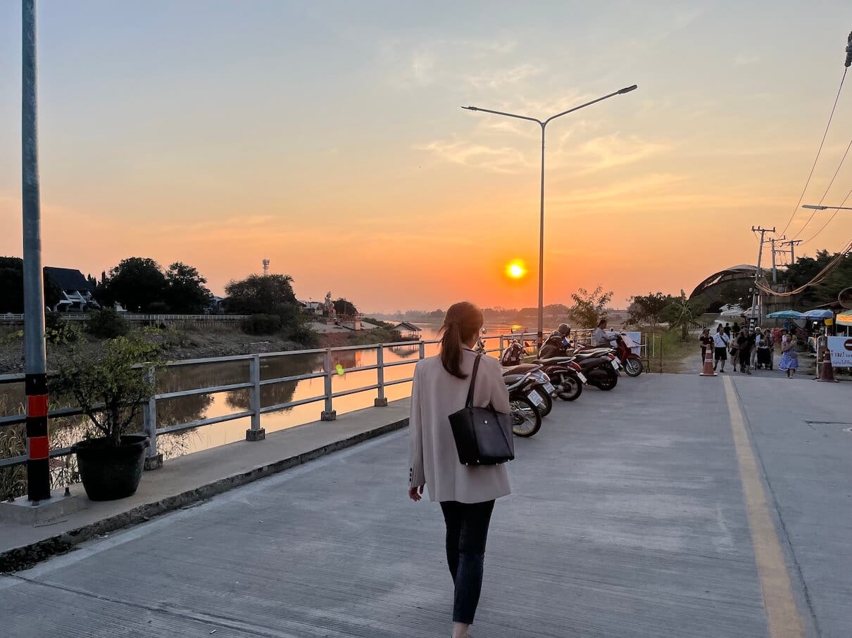 We came at sunset. The light and reflections made it one of the best photo spots we found in Nakhon Sawan.