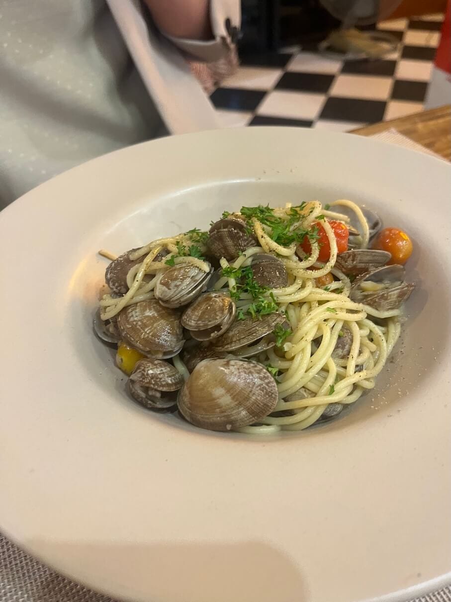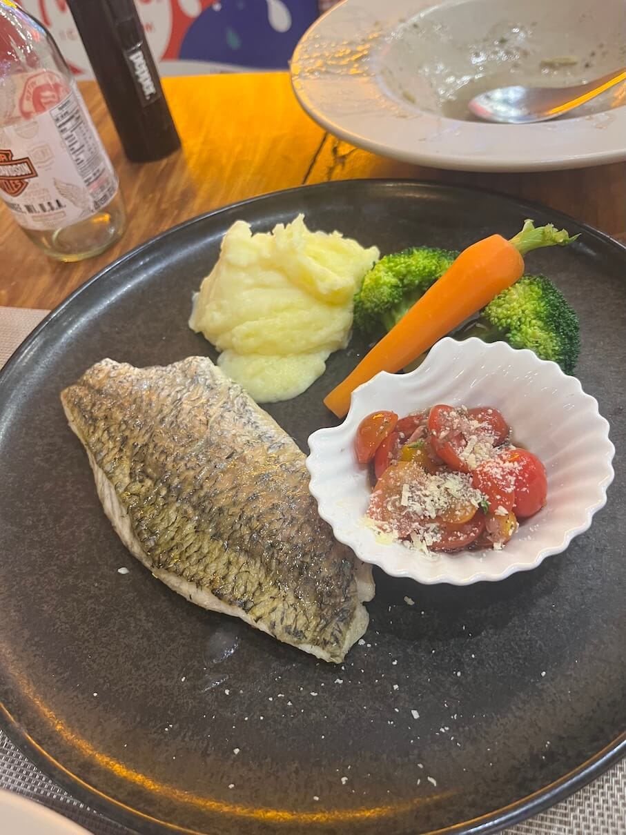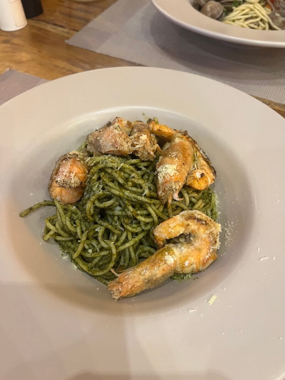 We ordered pesto pasta, vongole pasta and a fish dish. Portions were generous, ingredients fresh, but the food was under-seasoned so we had to add our own salt.